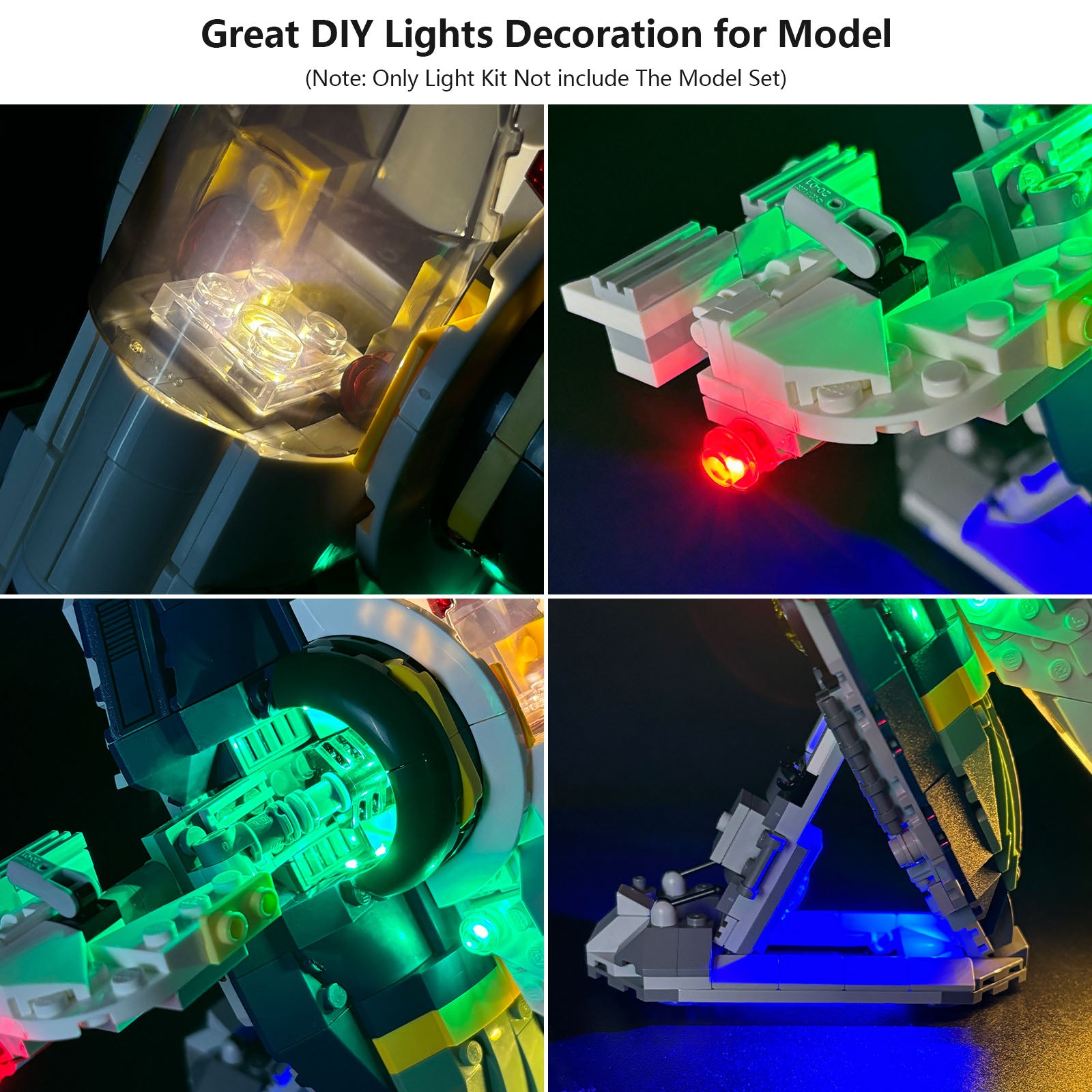 This premium lighting kit enhances your building experience by adding stunning illumination to the cockpit, engines, and weapon systems—just like in the movies! Easy to install and energy-efficient, it takes your display to the next level.