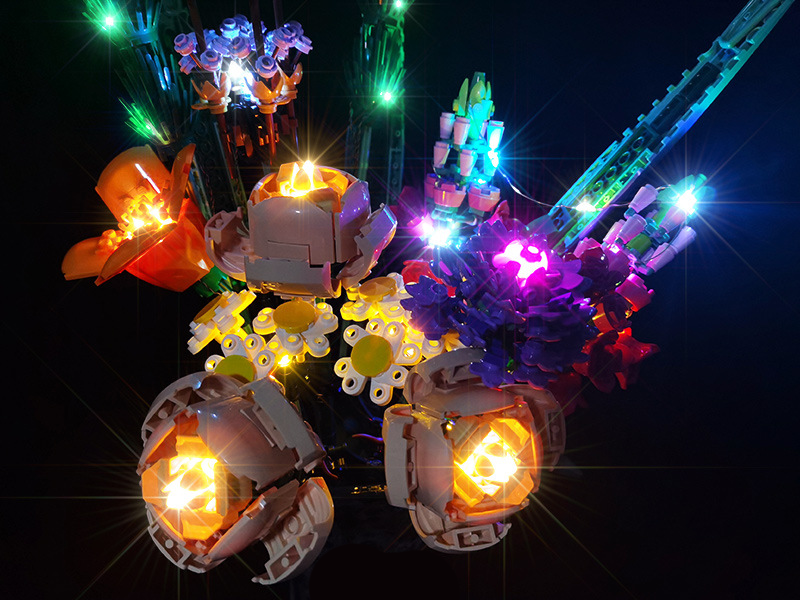 It's a testament to the power of LEGO lighting to elevate a model from a simple toy to a work of art that brings joy and inspiration to all who behold it. The illuminated LEGO® Flower Bouquet is sure to delight flower enthusiasts, LEGO enthusiasts, and anyone who appreciates the timeless beauty of a bouquet of flowers, making it a cherished addition to any home or collection.